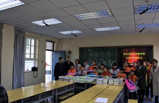 蒲城祥塬学校是我校乐竞官网平台定点扶贫计划中的对口单位,2017年双方已经进行过对接了解。这一次,乐竞官网平台为祥塬学校捐赠了一批图书和文体用品,并特别为学校16名特困生每人准备了一套精美书包及文具,由杨跃书记和王凤院长逐个送到孩子们手中。孩子们欣喜地接过书包文具,绽开腼腆的笑容,有的孩子会抬手敬一个少先队礼,说一声“谢谢老师”,现场洋溢着暖暖的温情。