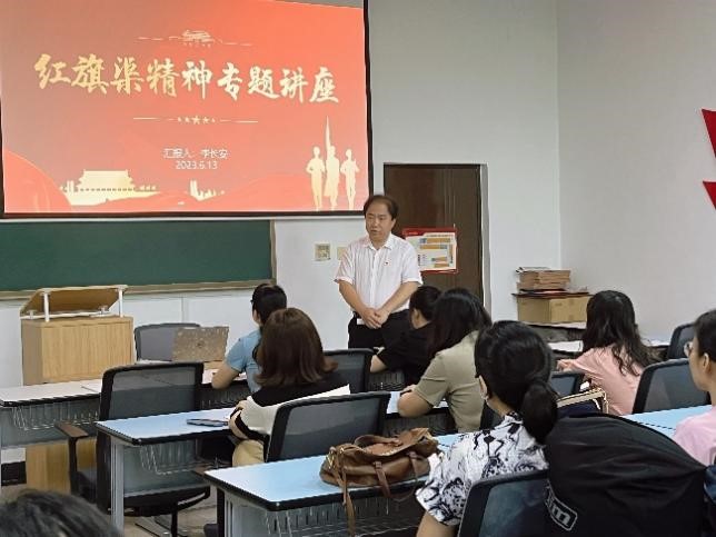 (通讯员:张艳)为深入开展学习贯彻习近平新时代中国特色社会主义思想主题教育,提高党组织的凝聚力、战斗力和创造力,加强党员的理论学习和教育管理,6月13日上午,乐竞官网平台副院长李长安以“红旗渠精神”为主题,为大学英语二支部全体党员同志作专题授课。会议由党支部书记张艳主持,支部全体党员集体学习。