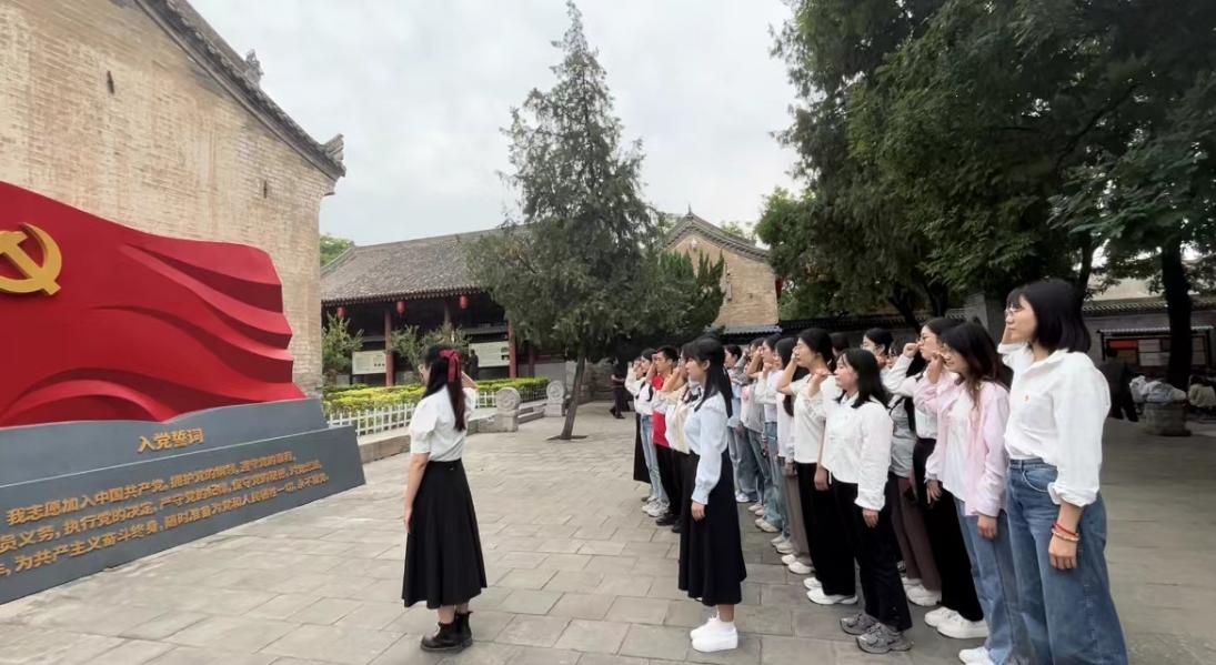 6月6日,在安吴青年训练班内,支部成员跟随着讲解员的脚步,详细了解了青训班从筹备至开班、再到培养出如西电校友、抗战烈士张露萍在内的一大批革命志士的发展历程。先辈们不怕苦、不怕累、就地学习的伟大精神,让同学们备受鼓舞。“当年青训班在如此艰苦的学习条件下,竟培养出如此多优秀学员,我们有什么理由不好好学习呢。”第一次来安吴堡学习的2022级党员江雪莹感叹到。在朱德同志“学好本领上前线”的题词旁,全体党员重温入党誓词,强化了党员同志的信仰,表达了“不忘初心、牢记使命”的决心。