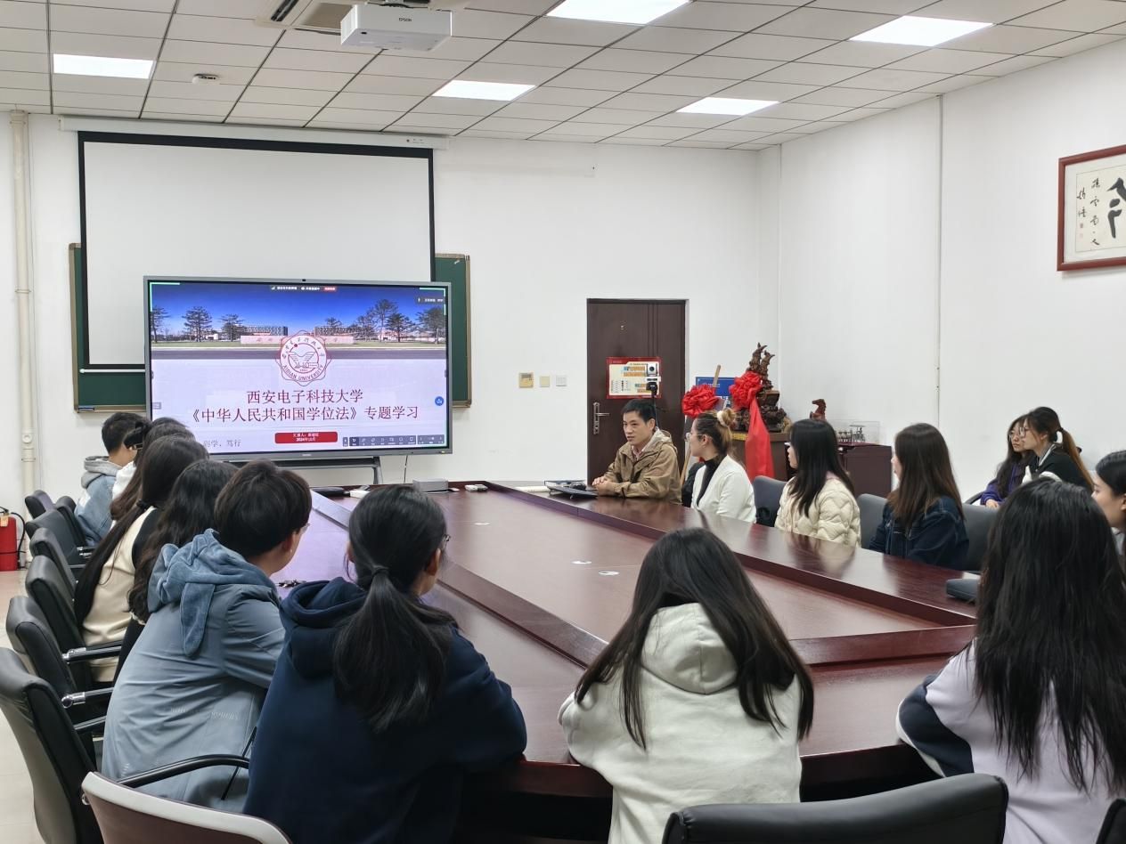 研究生辅导员为大家详细解读了《学位法》的历史背景和重要意义,逐条领学了学位的分类、学位授予的条件和程序、学位质量保障措施等内容。他特别强调了国家当前对专业学位人才培养的大力支持,为学院专业硕士研究生的学习注入了一剂强心针。他希望学院研究生能够持续深入学习《学位法》,准确把握法律规定,明确具体工作要求,将其精神贯彻到学习与科研的过程中,不断提升自身学术水平和实践能力,成长为新时代发展需要的复合型外语人才。