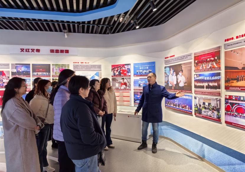 教师们齐聚一堂,共同参观交流。校史馆资料不仅展示了西安电子科技大学在人才培养、科学研究等方面的卓越成就,还深入讲解了在数智时代背景下,如何将学校的红色基因融入到为党育人、为国育才的过程中。红色基因作为西电的精神内核,一直是学校教育的重要组成部分。在数智时代,这一传统得到了新的诠释和传承。在新时代背景下,西电将继续坚持红色基因的传承,同时积极拥抱数字化、智能化的发展趋势,培养具有创新精神和实践能力的高素质人才。