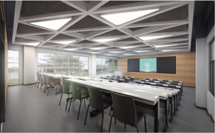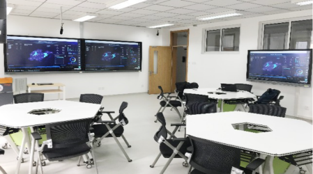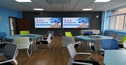 □分组研讨型——可活动、灵活分组桌椅,每组有独立显示屏,可供小组讨论及分享展示。任意切换显示的多屏互动,便于组间互动展示。