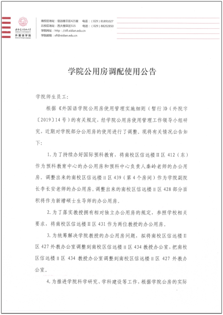 学院公用房调配使用公告