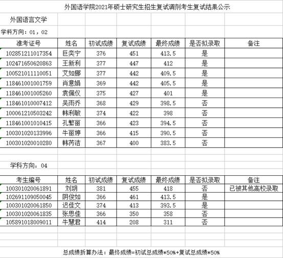 乐竞官网平台2021年硕士研究生招生复试调剂考生复试结果公示