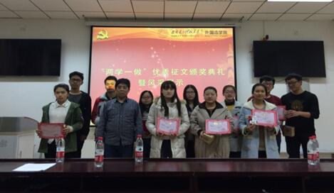 首先乐竞官网平台本科生党支部副书记张海洋同志对此次活动的目的,内容,意义以及开展的具体情况进行了介绍,“本次征文以“学党章党规 学系列讲话做合格党员”为主题,力图通过活动,深入思考,领会精髓,对自身的思想工作和生活实际做出反思。”接下来,本科生党支部书记张卫国老师为周子涵等十一名获奖同学颁奖并合影留念。随后,部分获奖同学进行了优秀征文的展示。