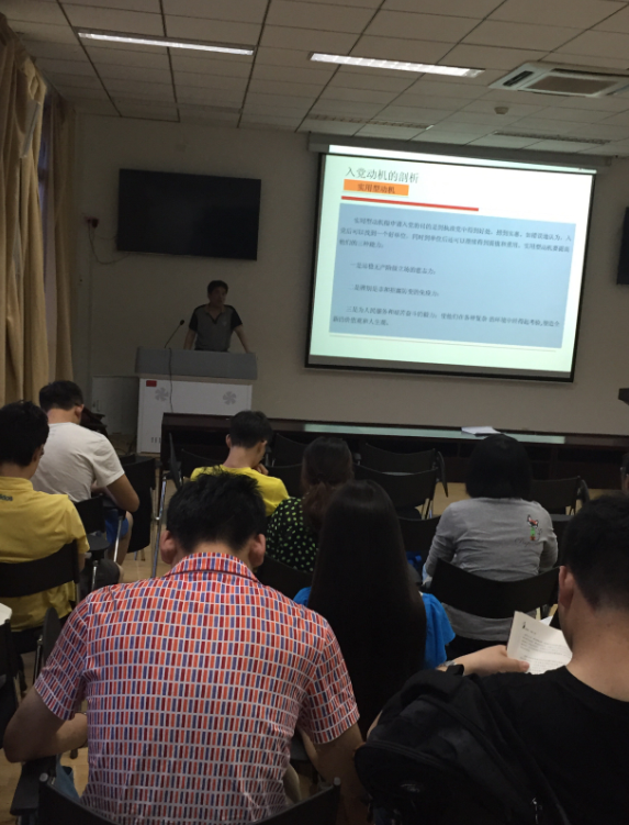 本次党课的主题是“端正入党动机,争做优秀党员”,张卫国老师首先就什么是入党动机进行了阐述,并列举了几种常见的入党动机实例,因为举例很好的概括了同学们当前的心理状态,同学们的热情也很快被调动了起来。张卫国老师针对大学生党员当前学习生活中的问题进行了讲评,并且向所有积极入党的同学发出“不再迟到,尊重课堂,做优秀模范“的号召,得到了同学们的积极响应。