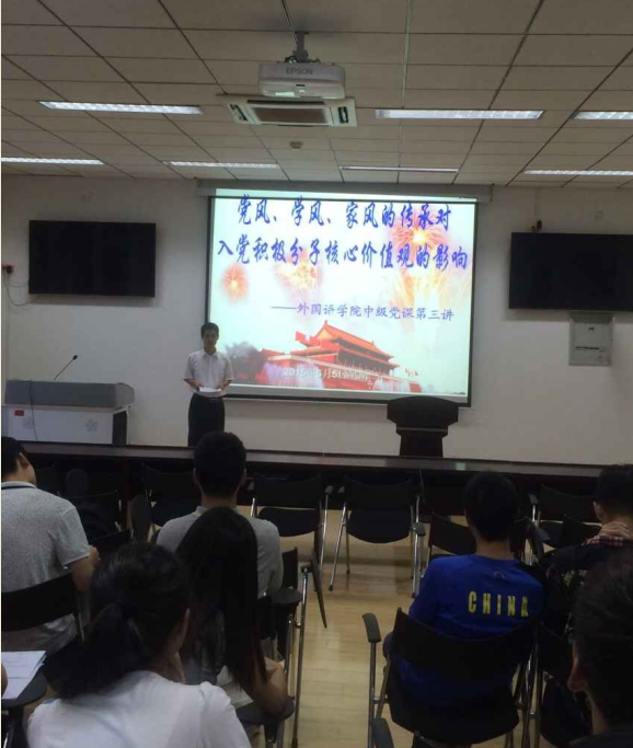 (通讯员: 李春宇 ) 2015年5月5日晚7点信远楼402报告厅,2014级乐竞官网平台中级党校全体学员参加了学院中级党课第三讲培训,此次党课的主题是《党风、学风、家风的传承对入党积极分子核心价值观的影响》,由唐建旺老师主讲。唐老师就“党风、学风、家风、班风”等几个个方面,深入浅出地为我们讲解了一名优秀的共产党员应当具有的价值观念,并要求入党积极分子树立并践行社会主义核心价值观。