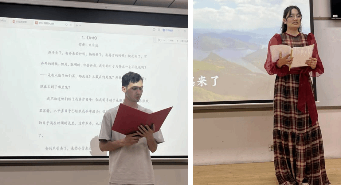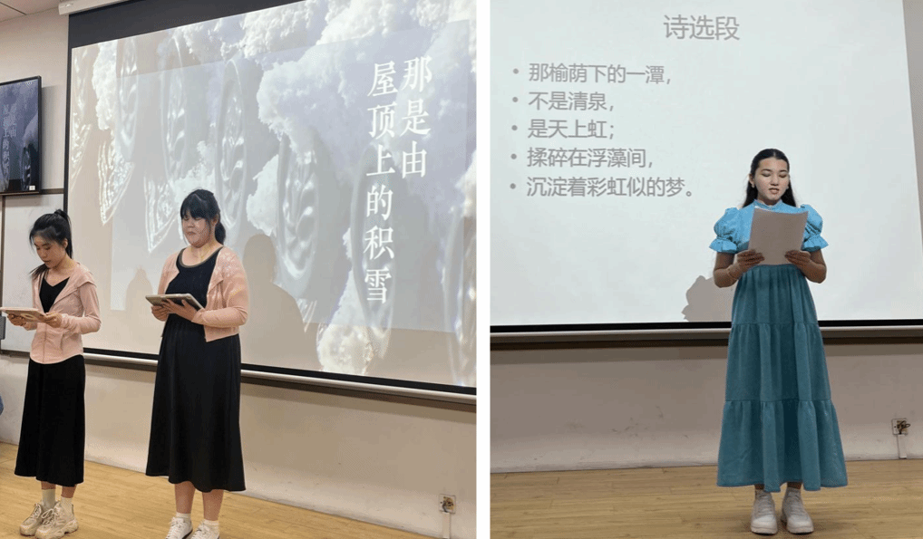 本次比赛共有二十余名留学生参加,他们精心准备了《水调歌头》《再别康桥》《致橡树》等经典文学作品,通过单人朗诵、组合朗诵、配乐朗诵等多种形式为现场的师生观众呈现了一场精彩的视听盛宴。标准的汉语发音和深情的演绎,展现了他们对中华文化的理解和热爱。