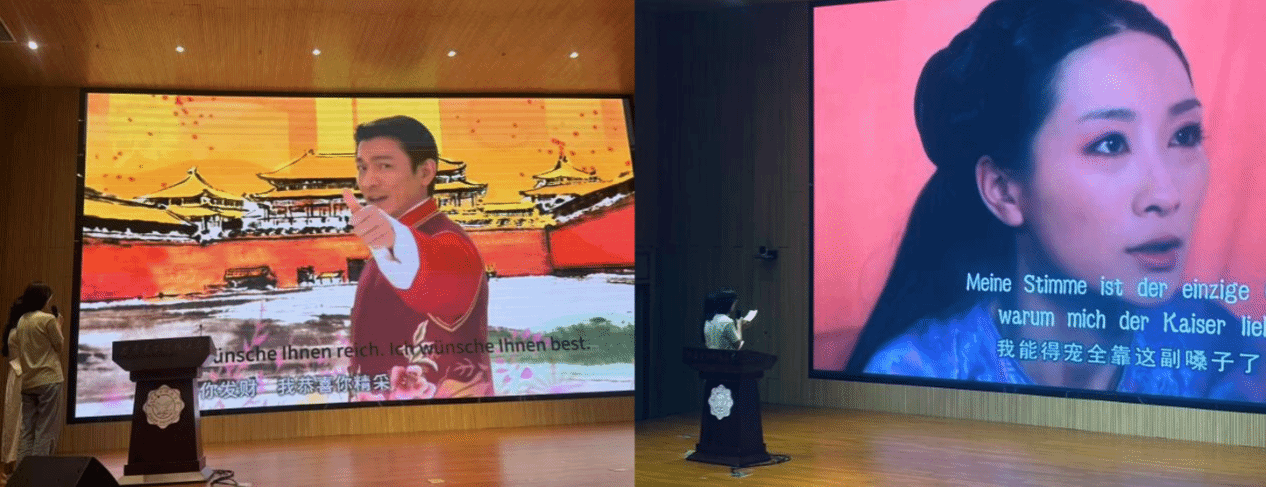 大赛正式开始。选手们以抽签顺序分上下半场依次登场,围绕经典影视、动漫、文学作品片段展开精彩演绎。法语的浪漫抒情、日语的细腻传神、德语的严谨深邃、韩语的灵动俏皮,还有外国留学生用中文对国内外经典影视片段的深情演绎,引发了观众的强烈共鸣,现场掌声喝彩声此起彼伏、不绝于耳。每当出现精彩演绎,席间便爆发出热烈欢呼,气氛持续升温。