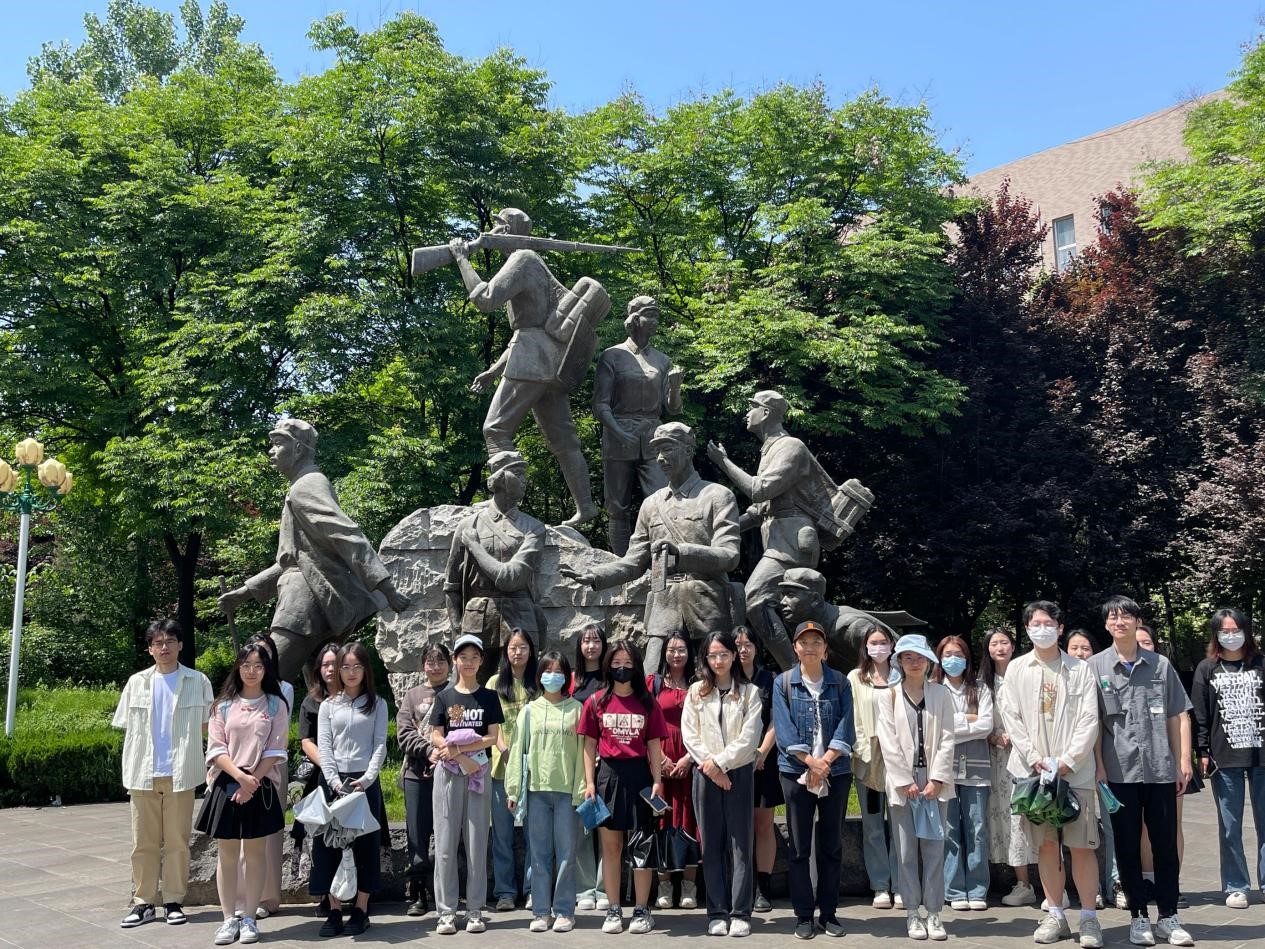 同学们首先在位于信远楼的雕塑——《长征路上办学》处集合,经过组织大家共同了解学习这段珍贵的校史文化。通过眼前的雕像,我们仿佛置身于那段艰难岁月,1934年12月的一天,长征途中,学员们坚持边战斗、边学习,看见大家认真地学习无线电技术时,周恩来副主席感慨万千地说:“长征路上办学校,这是件新鲜事,等将来革命胜利了,你们一定要告诉后代,红军是在几十万敌人的围追堵截下,在敌机不断轰炸的间隙学习电台技术,这可是相当宝贵的教材!”同学们实践中深深感悟到前辈们身上励学笃行的高贵品质。