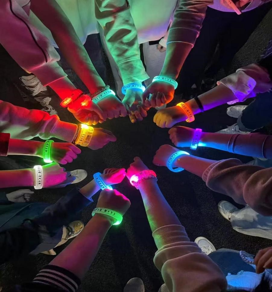 活动开始,主持人为学员们介绍了此次活动的具体要求、考核标准以及考核内容,并为学员分发荧光手环。本次活动从晚上7点进行到晚上8点,学员需要在一小时的时间内完成3千米的慢跑,用手机记录跑步轨迹最后上传跑步记录则视为完成考核。