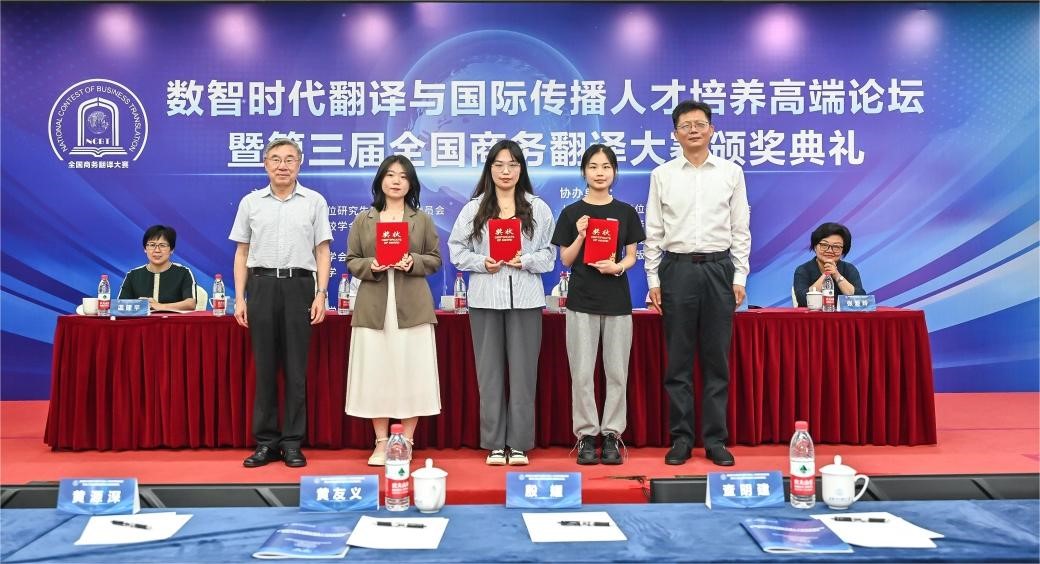 (通讯员:刘一鸣)7月5日-6日,数智时代翻译与国际传播人才培养高端论坛暨第三届全国商务翻译大赛颁奖典礼在上海对外经贸大学松江校区举行。本次大赛由全国翻译专业学位研究生教育指导委员会、中外语言文化比较学会、上海市外文学会、上海市科技翻译学会和上海对外经贸大学共同主办,旨在推进国家翻译能力建设,提高参赛者讲好中国故事、传播中国文化的能力,为中国走向世界和让世界读懂中国提供智力支持。