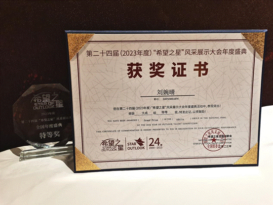 (通讯员:朱琳菲)8月8日,第24届“希望之星”风采展示大会年度盛典(全国总决赛)于北京举行,西电乐竞官网平台20级学生刘婉晴和21级学生郭振燕经过激烈角逐,以优异表现战胜众多强手,最终荣获“大学成人组”特等奖和一等奖,取得我校近年在该项赛事上的最好成绩。