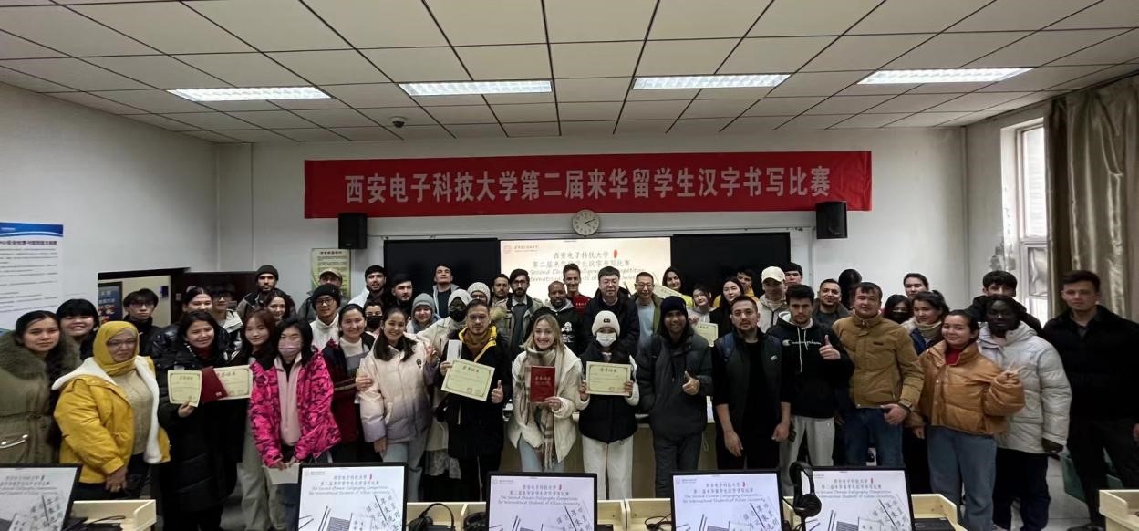 (通讯员:李书卿 韩冬)为丰富留学生校园生活,加深西安电子科技大学国际留学生对中国文化的了解,体验中华文化,感受汉字之美,培养留学生规范书写汉字习惯。由乐竞官网平台与国际教育学院联合主办,乐竞官网平台国际预科教育中心承办的西安电子科技大学第二届来华留学生汉字书写比赛,于12月22日下午在南校区信远楼Ⅱ区512教室成功举办。乐竞官网平台副院长张超、国际教育学院来华留学办公室隋悦老师以及乐竞官网平台国际预科教育中心主任李书卿出席了比赛并为获奖者颁奖。