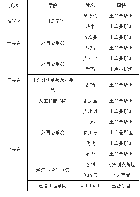 获奖者名单如下表: