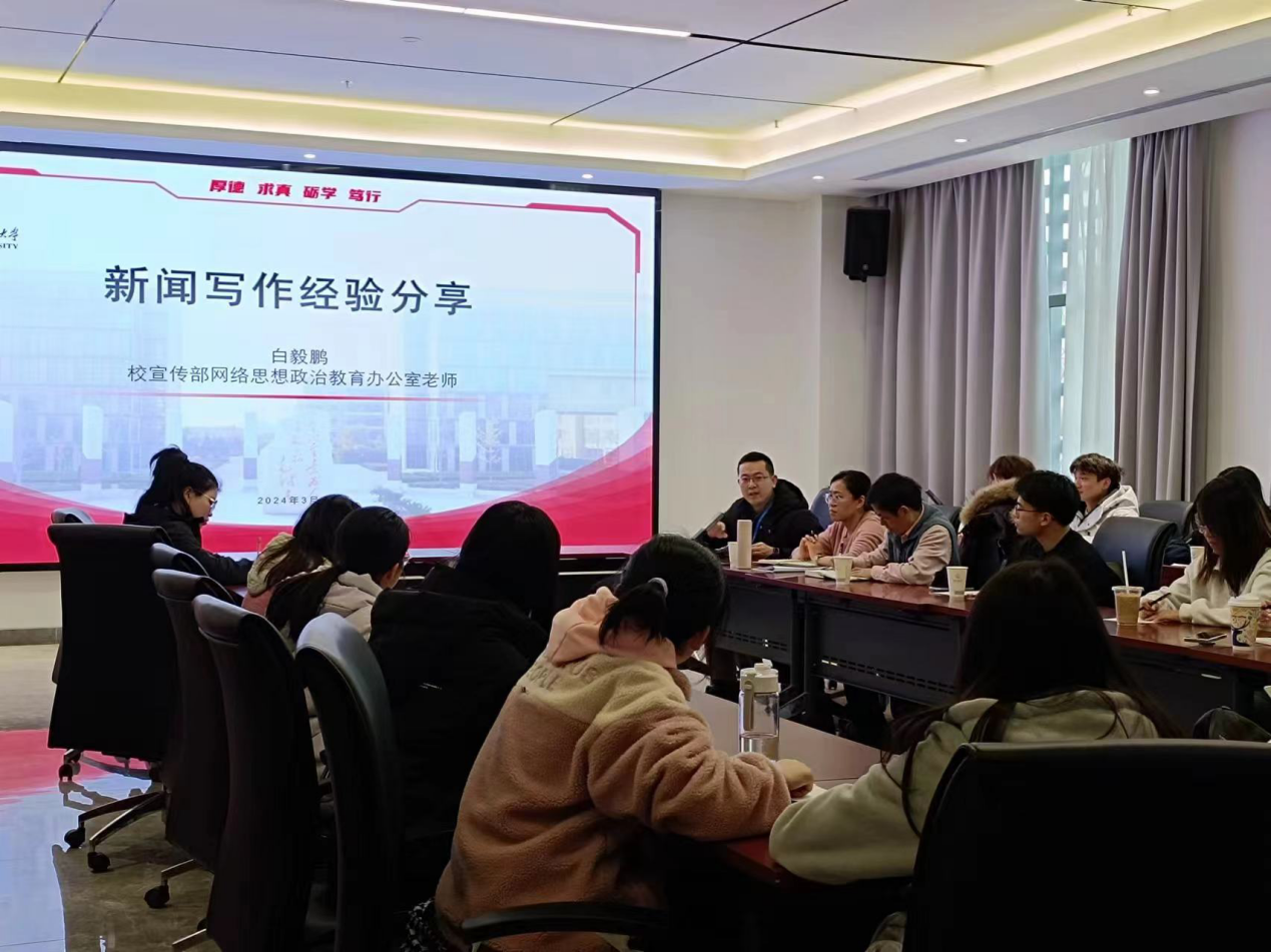 (通讯员:周彤、赵璐)3月8日下午,由乐竞官网平台举办的新闻写作技巧培训于南校区会议中心121会议室举办,学校党委宣传部白毅鹏老师做主题培训。乐竞官网平台党委副书记郑晓梅、研究生党支部书记唐建旺以及全体学生干部三十余人人参加培训。