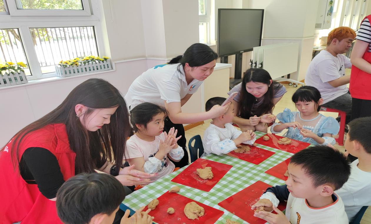随后,志愿者们和小朋友一起捏泥塑小象,给大家讲述泥塑历史及相关知识,并引导小朋友们充分发挥想象力和创造力,完成了属于自己的作品。泥塑活动后,高可一带领小朋友共同复习了前面学的英文单词,并发放英文动物贴纸作为奖励。