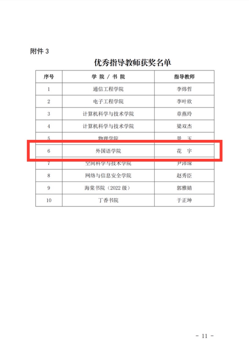 (通讯员:花宇)近日,由党委学生工作部组织的第九届“助学·筑梦·铸人”主题作品征集活动的结果公布,由我院学生团队创作的微视频荣获一等奖,与通信工程学院联合拍摄的微视频荣获二等奖,指导老师花宇荣获“优秀指导教师”称号。