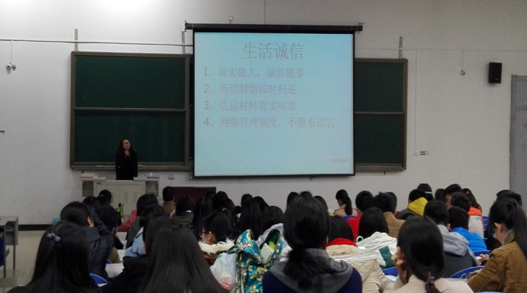 本次临近期中考试前的诚信专题教育,给同学们留下了深刻的印象;作为一名大学生,签下诚信档案也就意味着在接下来的大学生活里,我们会更加谨记诚信是何等的重要,诚信将会是我们必须时刻践行的准则。通过张老师和孙老师的诚信专题教育,同学们更加意识到了诚信的重要性,并在诚信档案上签字承诺,将在未来的学习生活中遵守诚信原则。