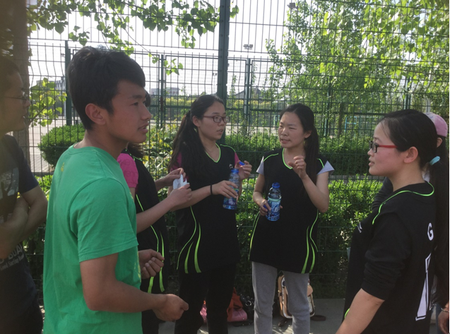 整个比赛精彩不断,平常看似娇柔的女生们的飒爽英姿引得现场观看的同学一声声叫好。随着哨声的响起,双方队员都迅速进入了状态。比赛开始不到5分钟,孙超冰同学的一个精彩投篮为我院赢得了2分,比赛的紧张气氛一下子感染了在场的每一个人。在一轮轮的抢球、断球、传球、投篮过程中女生们挥汗如雨,赵洁同学在传球时还一度被撞倒在地。双方队员你争我夺,你攻我守,丝毫不敢放松警惕。上半场比赛以4:4平局。中场休息时,作为教练的申祥龙同学给女生们分析了对方的打法并讲解了攻破之术。在下半场的比赛中我方队员势如破竹,看准对方的防守破绽,默契配合赢得了两个漂亮的进球,一下子将比分拉到了8:4。直到比赛结束前的1分钟,对方队员都没有抢球成功。最终,我队以8:4力挫对方赢得比赛。