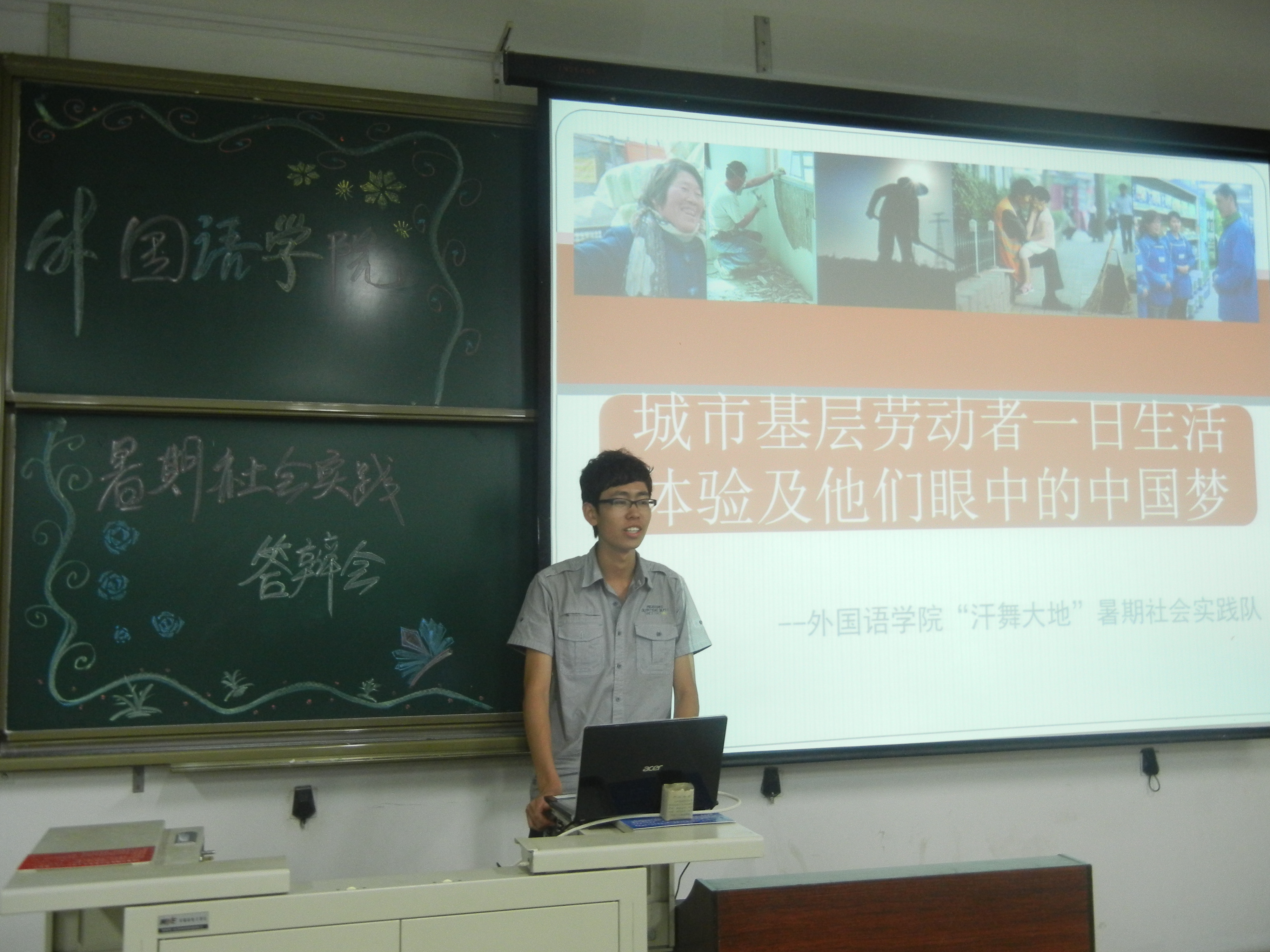 四支队伍代表按照抽签顺序分别从实践的准备、方案、可实施性等方面进行了介绍和说明,同时还就自己团队的优势以及团队的构成等方面向大家进行了展示。在答辩过程中,名为“汗舞大地”的社会实践队,以清晰的方案,新颖的主题,明确的实践对象等优势,博得了评委老师的认可,以及在座其他团队同学的认同。在各个团队对自己实践方案进行介绍的过程中,我们的评委老师就其在某些方面存在的不足进行指点,例如:如何规范申报书,如何注意实践的可实施性等,目的就是帮助同学们更好的完成暑期社会实践。