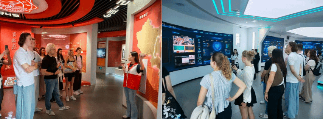 开营仪式后,中德师生共同参观了我校校史馆、博物馆和AI+教育中心。德国师生对我校“科技赋能教育”的实践成果表现出浓厚兴趣。当天下午,在外院学生志愿者的陪同下,德国师生漫步校园,沉浸式体验中国大学的日常氛围。