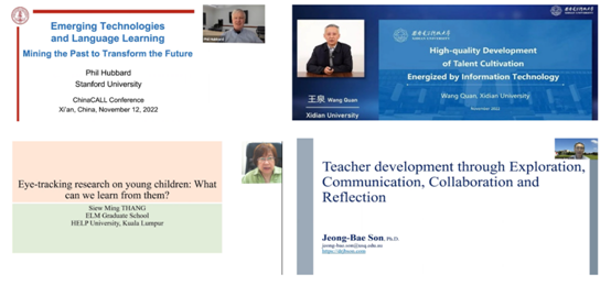 会议期间,Phil Hubbard教授,王泉教授,Thang Siew Ming教授,Jeong-Bae Son博士,赖春博士,李佐文教授,Mirjam Hauck博士分别作主旨发言。西安电子科技大学外语教育数字化研究院杨跃教授担任主旨发言主持人。