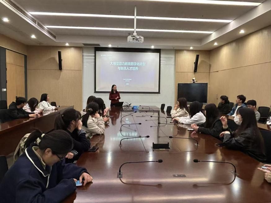 同时,《大模型助力教育数字化转型与新质人才培养》的讲座面向学生展开。讲师深入探讨了大模型技术对行业的影响与发展趋势。同学们踊跃发言,围绕外语专业在科大讯飞的岗位设置、学历要求等积极提问。科大讯飞人力资源负责人表示,外语专业学生需要参与语料构建、翻译和标注等工作,她鼓励外院学子提升综合素养,培养适应时代发展的复合能力。