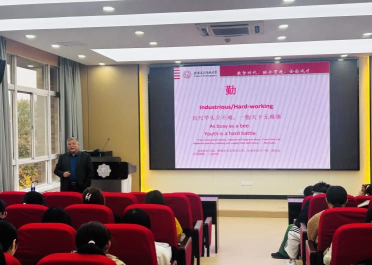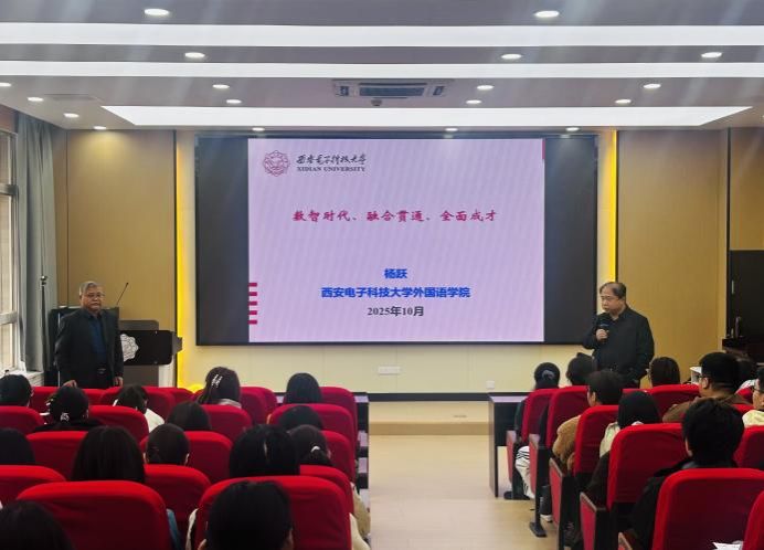 讲座伊始,杨教授用自己在成都电讯工程学院(现电子科技大学)的求学经历及1982年进入西电后的教学经历和出国经历,鼓励大家学外语必须要走出去。作为长期耕耘在外语教学与科研一线的专家,杨教授结合自身多年教学经验与外语学科发展趋势,为2025级新生的专业学习与职业发展提出了新思考和新要求。