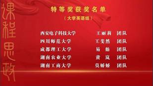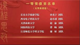 此次获奖的三支教师团队在完成教学任务同时,积极发挥大学外语课程优势和特点,充分挖掘课程中蕴含的丰富育人资源,定期研讨,紧扣教学主题,深入梳理文本内容,对教学材料和教学资源进行有机整合,将思政元素有机融入教学内容、设计、方法、资源、评价等方面,强化课程育人,实现价值塑造、知识传授和能力培养三者相统一,达到溶盐入水,润物无声的育人效果,落实立德树人根本任务,。通过课程学习,学生能够树立正确的世界观、人生观和价值观,正确对待世界文明成果,在比较中加深对中外文化的理解,坚定文化自信,促进文化交流与互鉴,提升爱国主义精神、家国情怀,用外语讲好中国故事。
