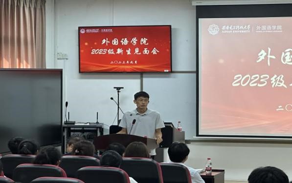 会议伊始,徐战利代表学院对在座90余名本科新生及家长朋友表达了祝贺和欢迎,他详细介绍了西安电子科技大学辉煌历史和发展现状、军校底蕴和电子信息行业特色,强调外语在国际上的开路桥梁和支撑作用,激励西电外院学子尽快适应以电子信息为背景的复合型人才培养模式,拓宽国际视野,用外语讲述中国故事,传播中华文化,利用语言打开世界的大门。
