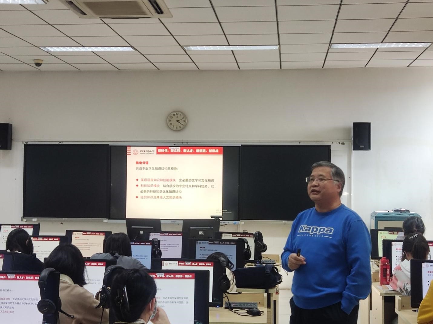讲座伊始,杨教授用自己在成都电讯工程学院(现电子科技大学)的求学经历及1982年进入西电后的教学经历和出国经历,鼓励大家学外语必须要走出去,了解外面的世界,在文化潜移默化的影响下学习外语。