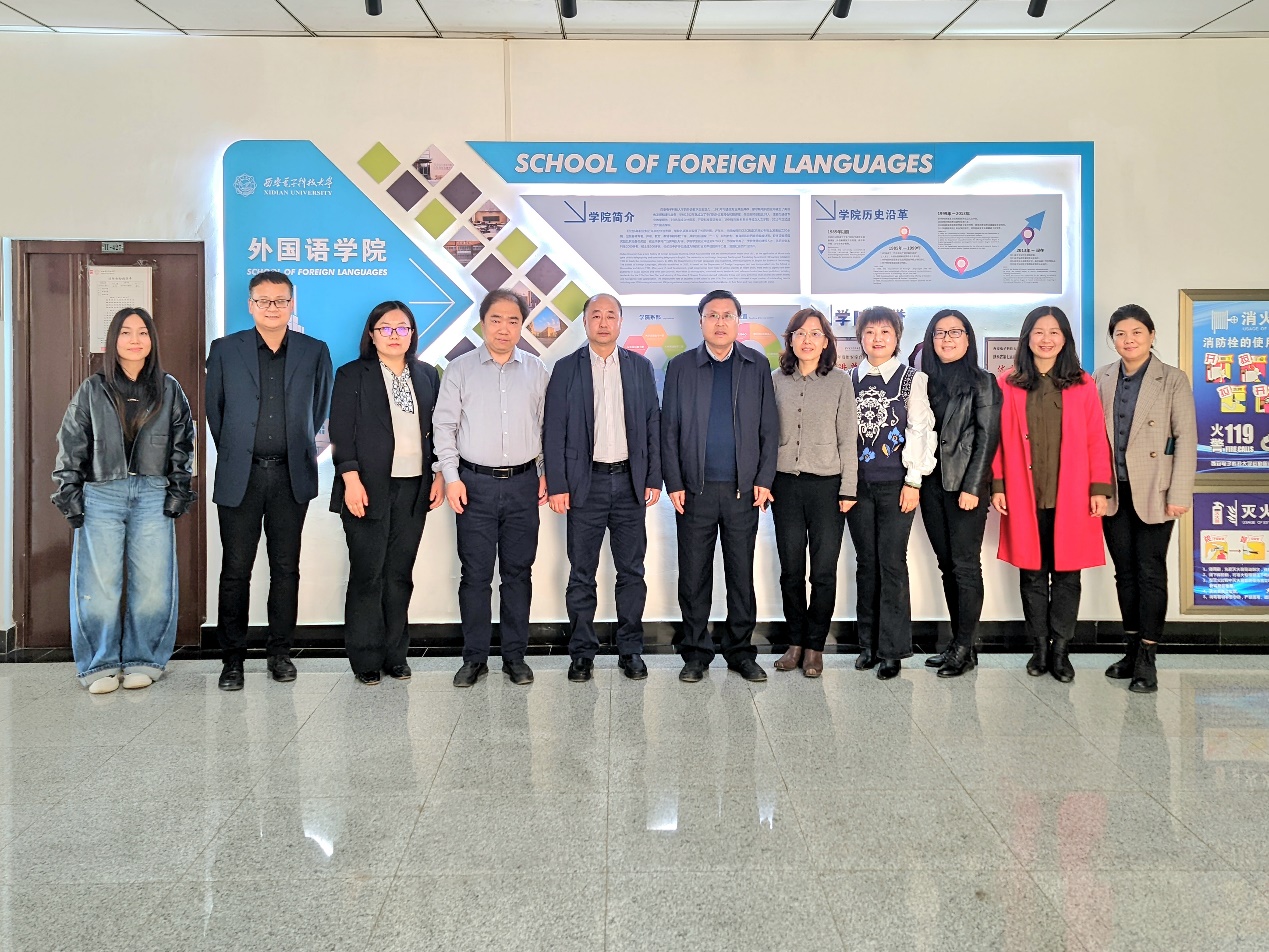 (通讯员:王朔杨)3月14日下午,西安财经大学乐竞官网平台院长杨宪平、副院长赵红霞、副院长纪奕娜、英语/商务英语系主任姚雪梅、大学英语第一教学部主任马雪艳、科研基地副主任李莹等一行六人来西电乐竞官网平台调研,院长马刚、副院长李长安、副院长曹志宏、大学英语公共课程组负责人陈万庆、研究生英语教学部主任郎曼等参加调研。